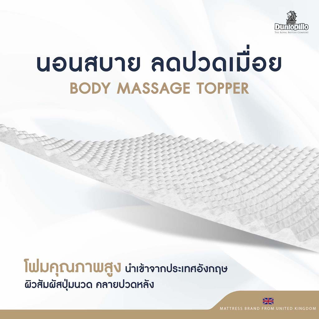 - Body Massage Topper โฟมคุณภาพสูง นำเข้าจากประเทศอังกฤษ ผิวสัมผัสประกอบไปด้วยปุ่มนวด ที่ช่วยนวด ผ่อนคลายจุดตึงเครียด