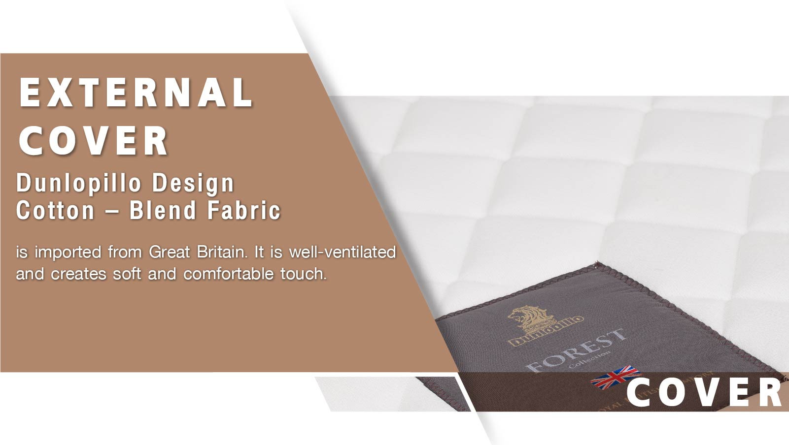 - Dunlopillo Design Cotton – Blend Fabric is imported from Great Britain. It is wellventilated and creates soft and comfortable touch.