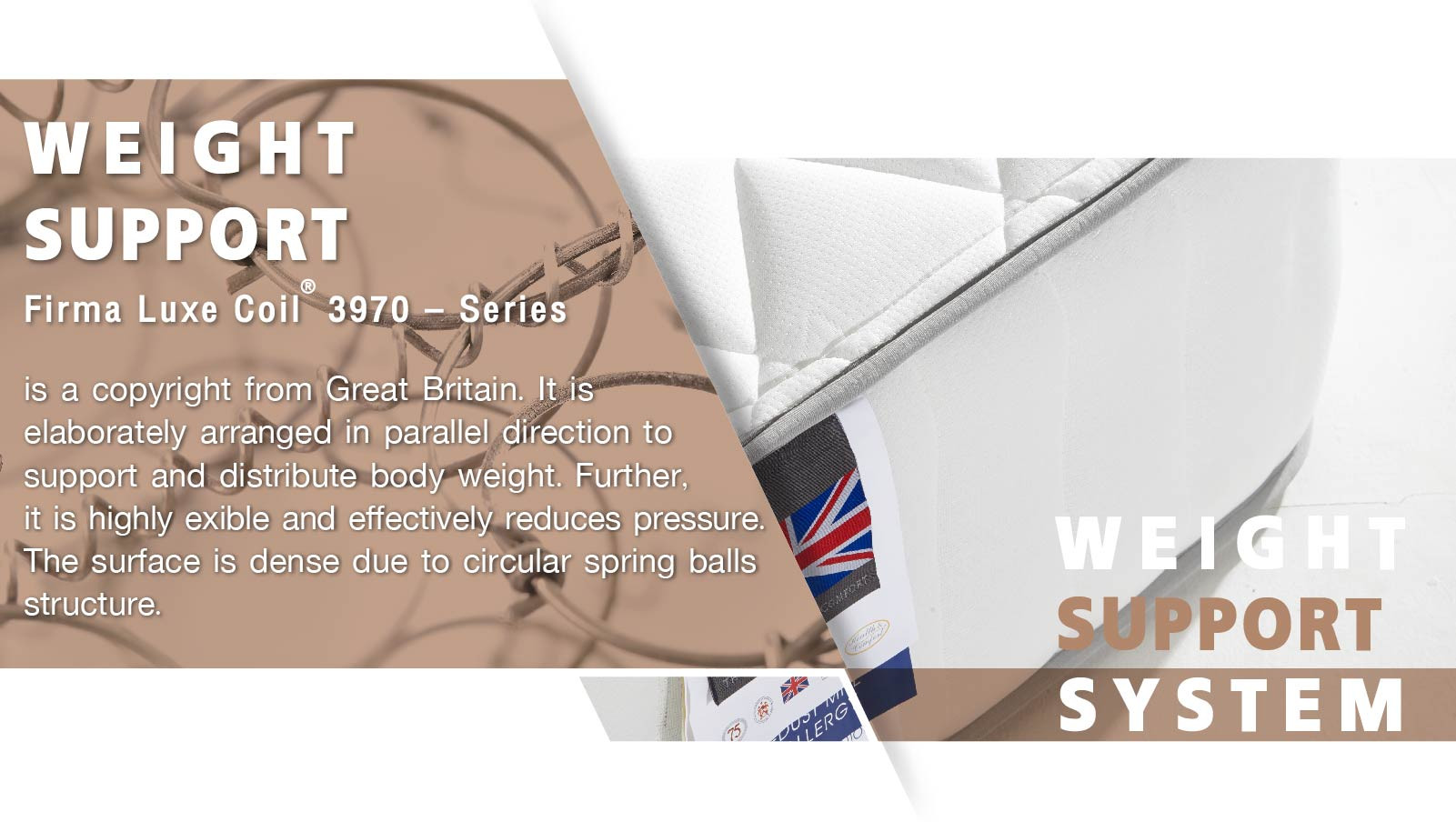 - Firma Luxe Coil ® 3970 – Series is a copyright from Great Britain. It is elaborately arranged in parallel direction to support and distribute body weight. Further, it is highly flexible and effectively reduces pressure. The surface is dense due to circular spring balls structure.