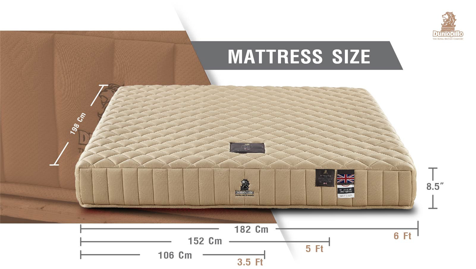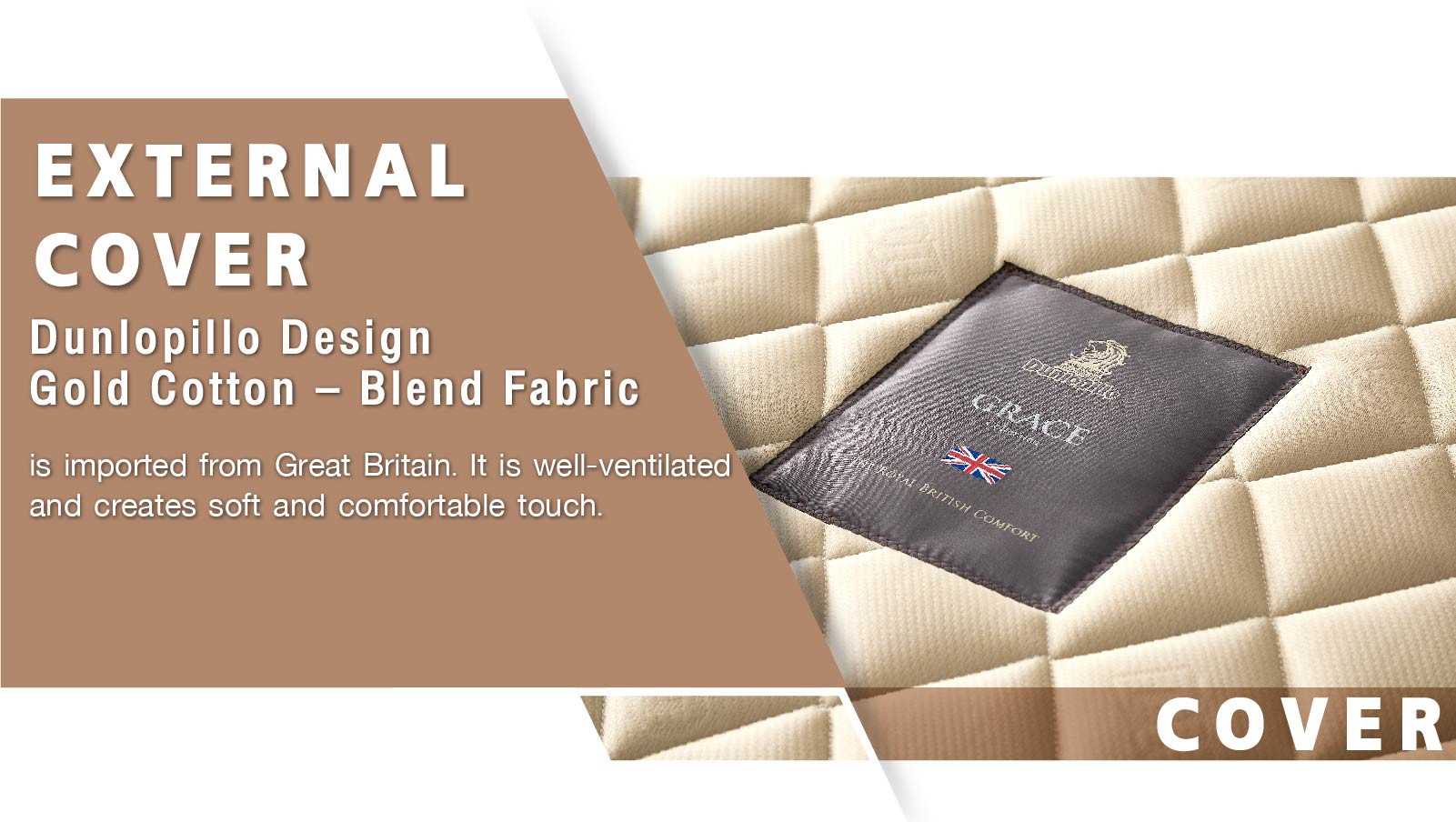 • Dunlopillo Design Cotton – Blend Fabric is imported from Great Britain. It is wellventilated and creates soft and comfortable touch.