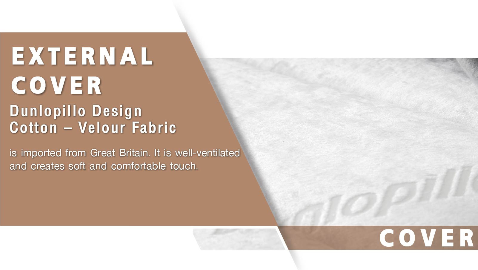 Dunlopillo design cotton- Velour fabric is imported from Great Britain. It is wellventilated and creates soft and comfortable touch.