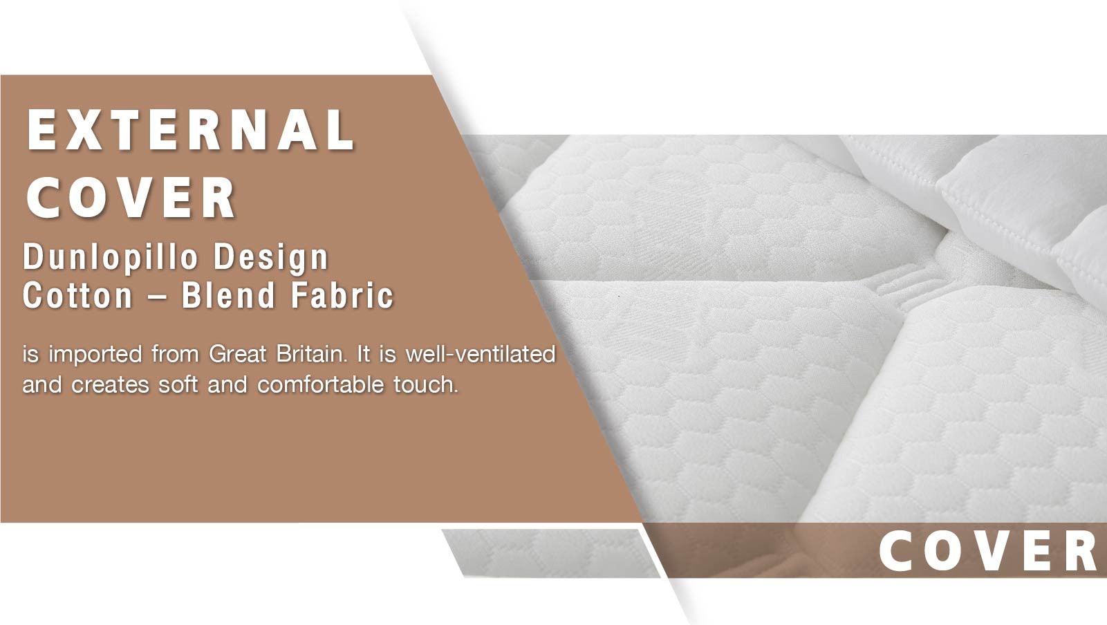 - Dunlopillo Design Cotton – Blend Fabric is imported from Great Britain. It is wellventilated and creates soft and comfortable touch.