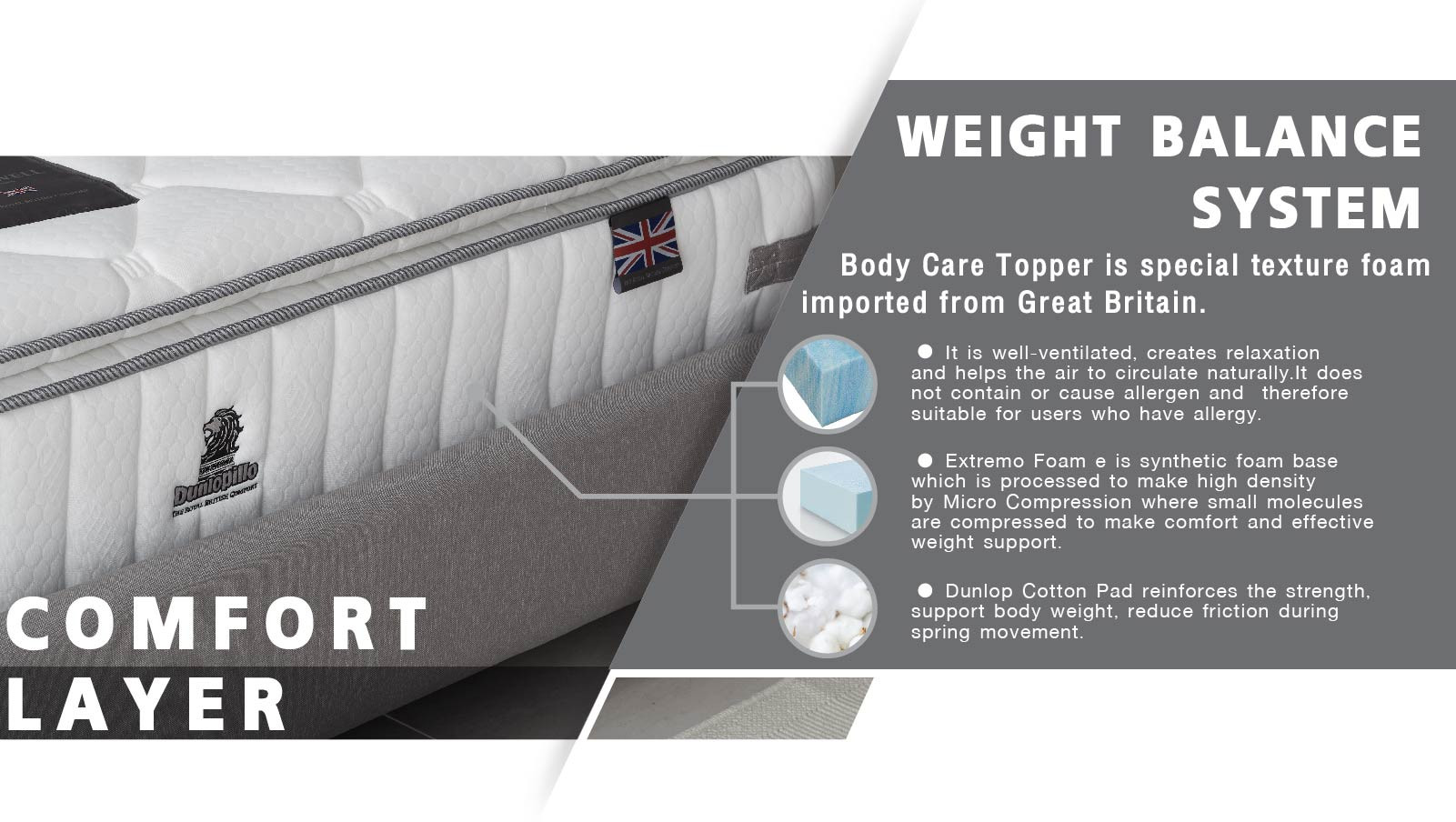 - Dunlopillo Cotton Pad reinforces the strength, support body weight, reduce friction during spring movement.
