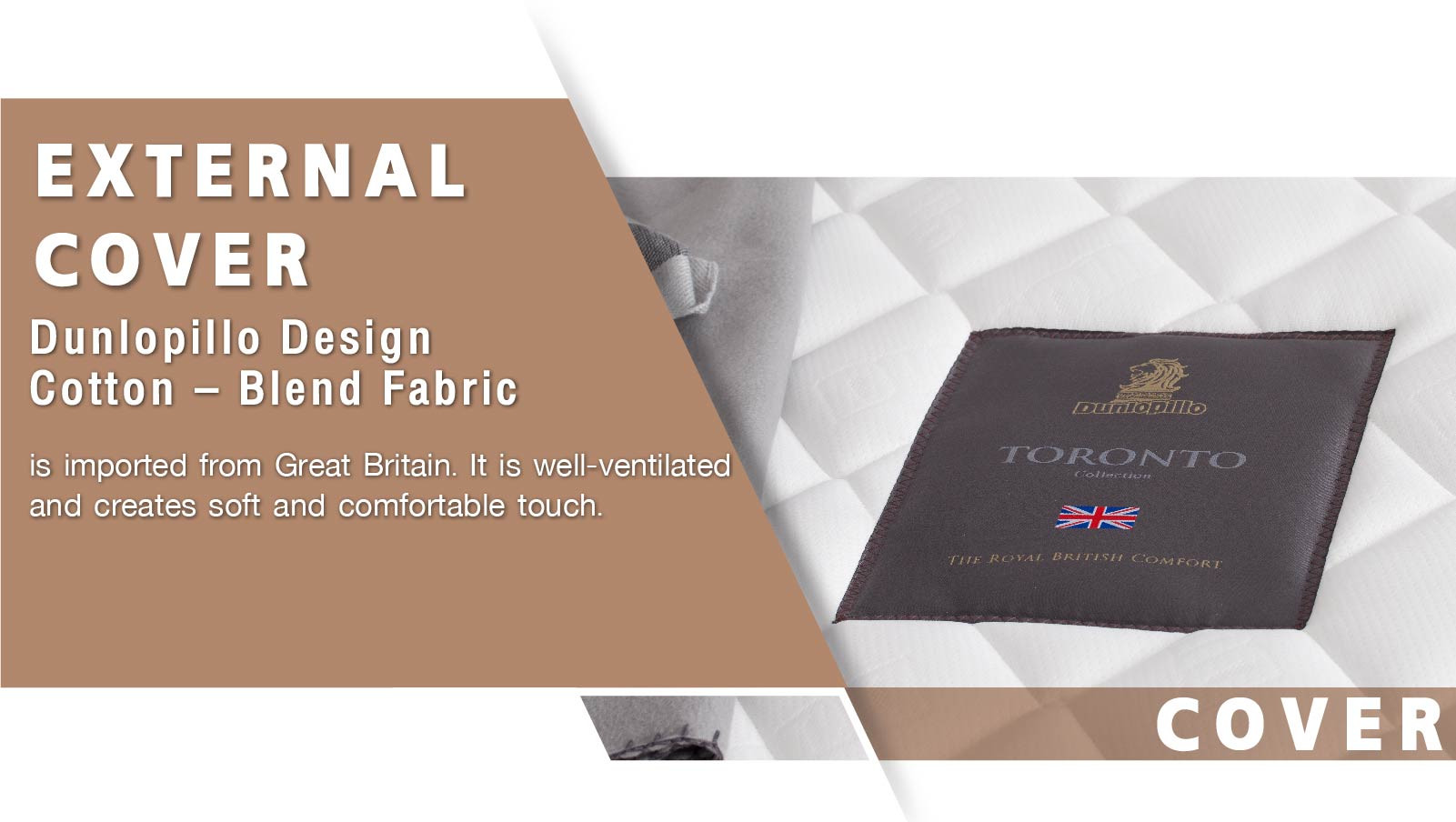 Dunlopillo Design Cotton – Blend Fabric is imported from Great Britain. It is wellventilated and creates soft and comfortable touch.