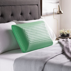 Relax naturally with plush memory foam paired with relaxing aromatherapy spray. Plush, pressure-easing Dough® memory foam is infused with the scent of chamomile for cozy, natural relaxation. Roman chamomile is known for its soothing and relaxing properties. A mini spritzer bottle of natural Roman chamomile aromatherapy spray accompanies the King and Queen size pillows to refresh the aroma. Zoned Technology design creates larger holes in the center of the pillow to cradle the head and smaller holes around the edges for superior neck support. A beautiful and soft Tencel® mesh cover adds the temperature- and moisture-regulating comfort of eco-friendly fabric. Travel size pillow does not include aromatherapy spritzer. Cover: 63% Tencel™ lyocell, 37% polyester, Cover sidewall: 100% Tencel™ lyocell, Fill: 100% polyurethane foam