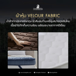 • ผ้าหุ้ม Dunlopillo Design Cotton – Velour Fabric นำเข้าจากประเทศอังกฤษ ผิวสัมผัสกำมะหยี่นุ่มสบายดุจเส้นไหม สามารถระบายอากาศได้ดี และ สร้างความสบายในทุกผิวสัมผัส