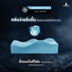 หลับลึกยาวนานกับการพักผ่อนที่เย็นสบายที่สุด ด้วยนวัตกรรมผสานความเย็นไว้ในทุกสัมผัสกับ Snow Gel Visco Tech Topper เมมโมรีโฟมที่กักเก็บความเย็นได้ดีเป็นพิเศษ ไม่สะสมความร้อนและความอับชื้น ทั้งยังสามารถดูดซับแรงกดทับได้แบบ Progressive และรองรับสรีระได้อย่างมีประสิทธิภาพมากกว่าเมมโมรีโฟมถึง 4 เท่า พร้อมผ้าหุ้ม SNOWTEMP Fabric สามารถกักเก็บความเย็นเพื่อช่วยปรับอุณหภูมิร่างกายให้เหมาะสม ลดปัญหาเหงื่อซึมที่รบกวนการนอน