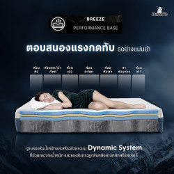 - Breeze Performance Base สุดยอดชั้นฐานรองรับน้ำหนักนวัตกรรมที่ตอบสนองแรงกดทับทุกสรีระได้อย่างเหมาะสม ด้วยระบบ Dynamic System ปรับโมเลกุลโครงสร้างโฟม เพิ่มมวลอากาศเพื่อเสริมประสิทธิภาพการรับน้ำหนัก จึงสัมผัสได้ถึงการรองรับที่ผ่อนคลายอย่างเหนือชั้น เสริมคุณสมบัติความเย็นด้วย Cooling Gel ช่วยคงความสบายของการพักผ่อนไว้ตลอดคืน