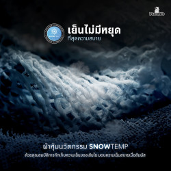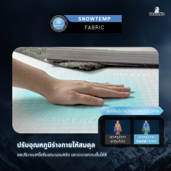 - SNOWTEMP Fabric ผ้าหุ้มนวัตกรรมเพื่อความเย็นสบาย โดยเส้นใยสามารถกักเก็บความเย็นเพื่อช่วยปรับอุณหภูมิร่างกายให้เหมาะสมต่อการนอนหลับ ลดปัญหาเหงื่อซึมให้คุณรู้สึกนอนสบายมากขึ้น พร้อมคุณสมบัติระบายความอับชื้น และป้องกันการสะสมของไรฝุ่นและแบคทีเรีย เพื่อยกระดับสุขภาพในการพักผ่อนของคุณ