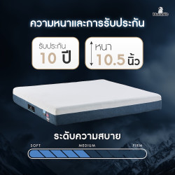 ความหนา 10.5 นิ้ว (+/-10 มม.) รับประกัน : 10 ปี ระดับความสบาย : สมดุลลงตัว ระดับ 5