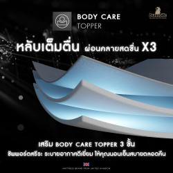 Body Care Topper (2 ชั้น) โฟมเนื้อพิเศษนำเข้าจากประเทศอังกฤษ High Density ระบายอากาศได้ในตัว ช่วยสร้างความรู้สึกผ่อนคลาย และมีส่วนช่วยให้อากาศไหลเวียนได้อย่างอิสระไม่ทำให้เกิดอาการแพ้เหมาะสำหรับบุคคลที่เป็นโรคภูมิแพ้