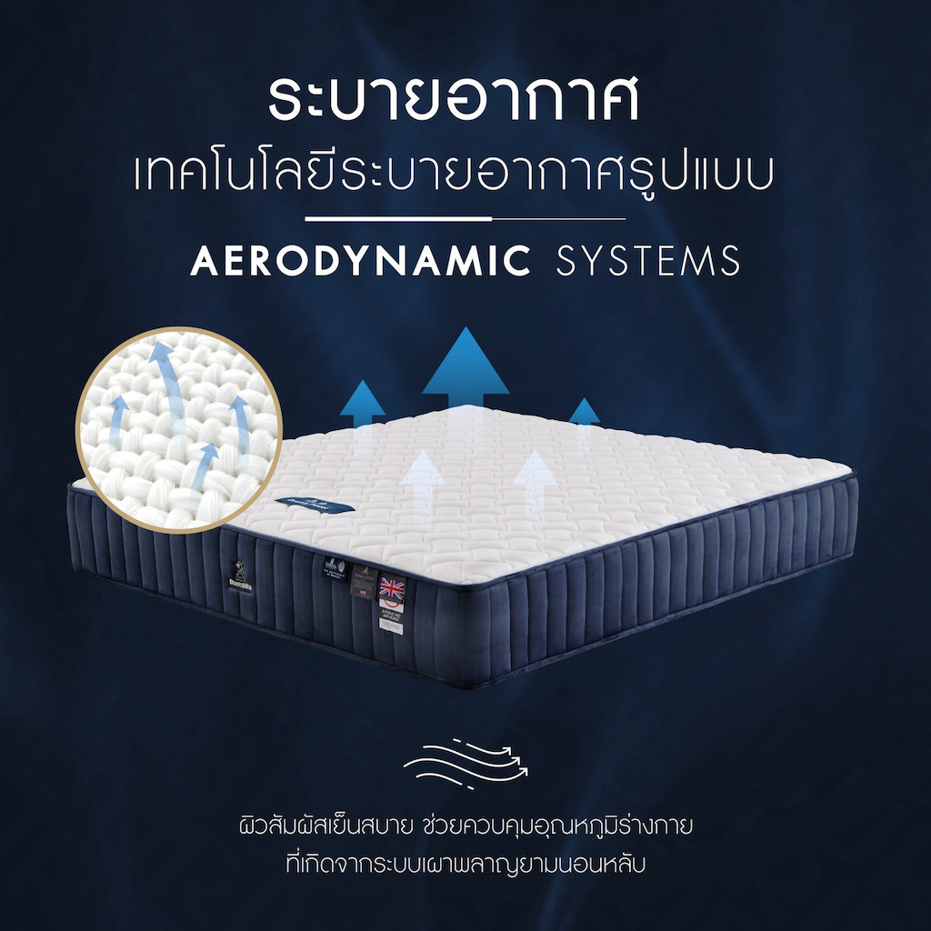 Aerodynamic เทคโนโลยีระบายอากาศรูปแบบ Aerodynamic ผิวสัมผัสเย็นสบาย ความคุณอุณหภูมิร่างกายที่เกิดจากระบบเผาพลาญยามนอนหลับ