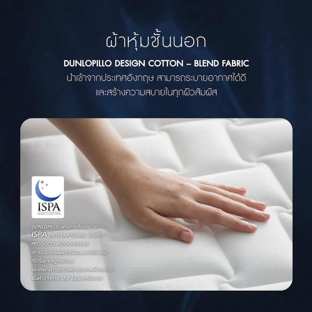 ผ้าหุ้ม Dunlopillo Design Cotton - Blend Fabric นำเข้าจากประเทศอังกฤษ สามารถระบายอากาศได้ดี และสร้างความสบายในทุกผิวสัมผัส