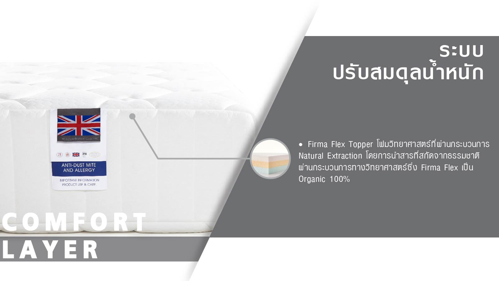 • Firma Flex Topper โฟมวิทยาศาสตร์ที่ผ่านกระบวนการ Natural Extraction โดยการนำสารที่สกัดจากธรรมชาติ ผ่านกระบวนการทางวิทยาศาสตร์ซึ่ง Firma Flex เป็น Organic 100%