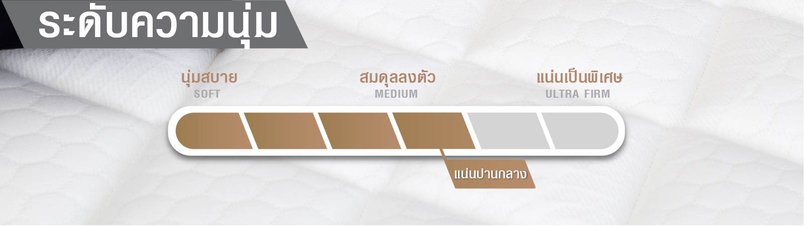 • แผ่น Medium Foam Multiple Layers ช่วยกระจายผ่อนแรงกดทับเบื้องต้น ณ ผิวสัมผัสของที่นอน