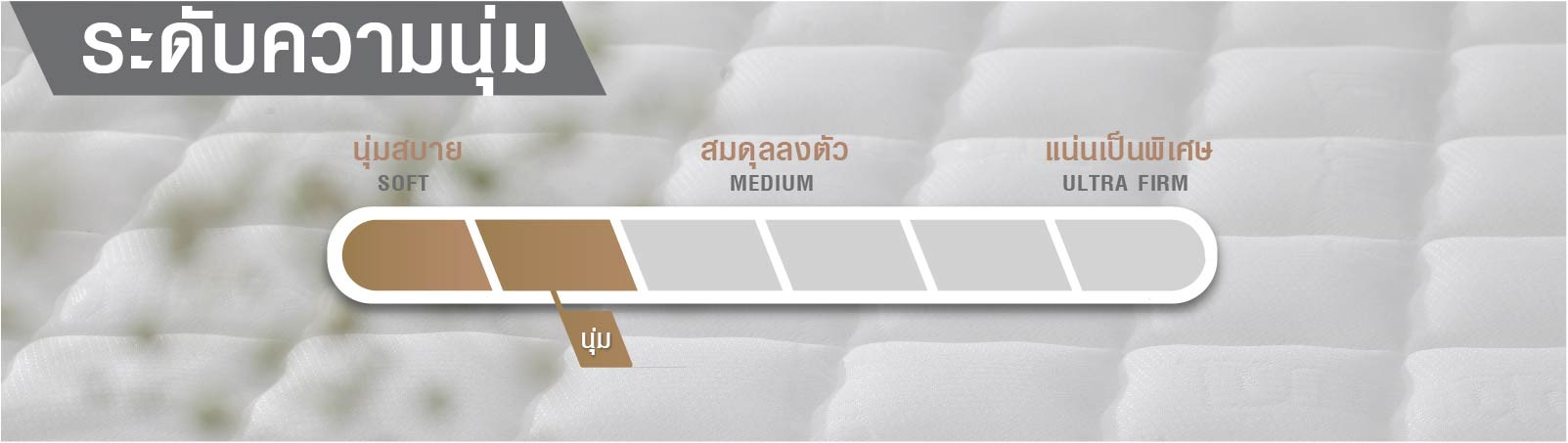 • ใยสังเคราะห์คุณภาพสูงให้ทุกสัมผัสนุ่มนวลคลายแรงกดทับอย่างเป็นธรรมชาติ