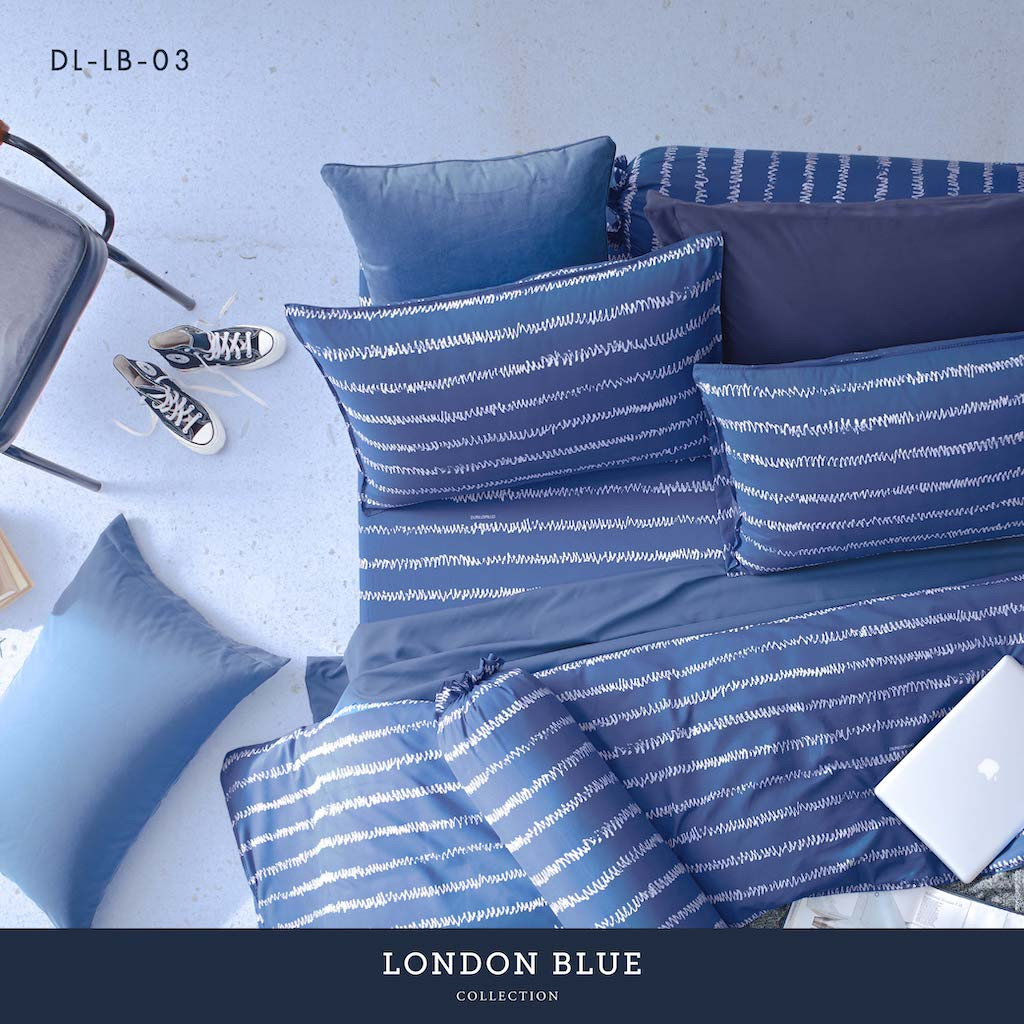 ชุดผ้าปูที่นอน London Blue Collection จาก Dunlopillo ความสุขุมที่นุ่มลึกที่สร้างความรู้สึกเงียบสงบของเฉดสีฟ้าคราม ผสมผสานเข้าด้วยกับวัฒนธรรมศิลปะร่วมสมัยของเมือง London แรงบันดาลใจที่ก่อให้เกิด การออกแบบลวดลายที่ทันสมัย และไร้กาลเวลาที่เข้ากับการตกแต่งห้องนอนได้อย่างลงตัว